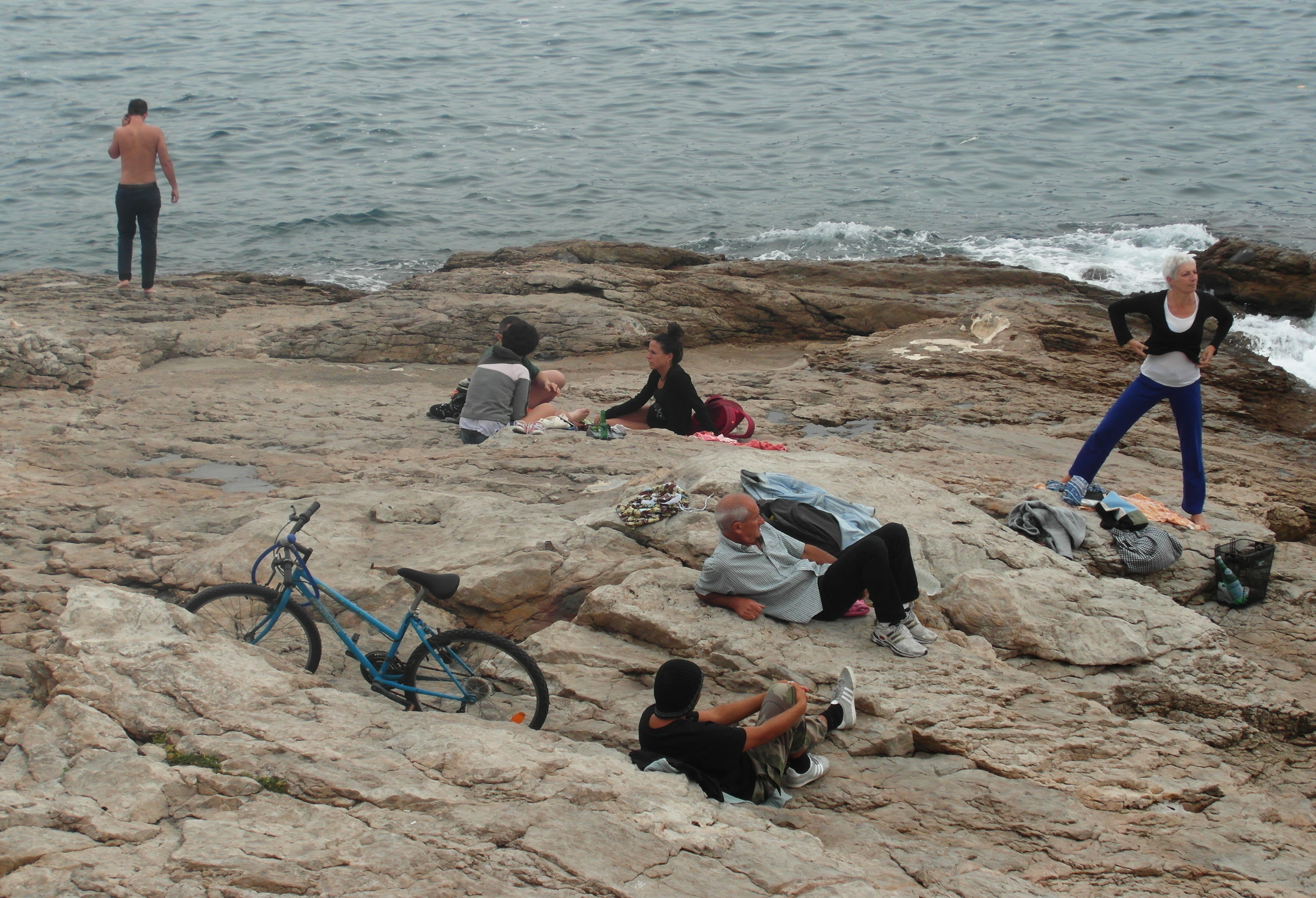 Moře je kupodivu čistý, hodně lidí se ještě koupalo. Díky skalnatýmu pobřeží se dá najít spousta ukrytejch koutů, kde se asi dá strávit hezká neděle. Už chápu, že jestli tohle někdy viděl nějakej Pařížan, musel puknout závistí. A já jsem celkem pukala závistí, že tenhle dědula tady v sedmdesáti hopsá po útesech a vypráví o nejlepší bujabéze v Marseille, zatímco já mam pocit, že mi po tomhle víkendu asi upadnou nohy.